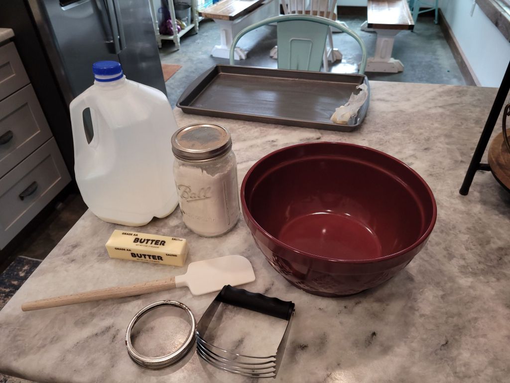 If I am just making them for my little family, I use a wife mouth lid. This yields about eight biscuits.